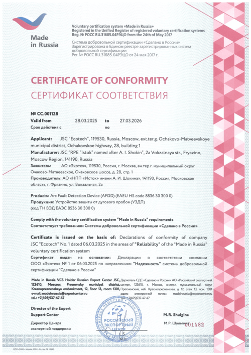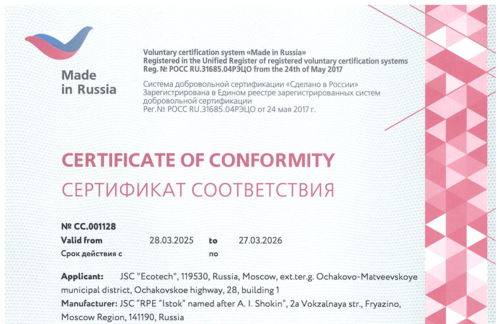 В марте 2025 года наша компания официально получила знак «Сделано в России» — это подтверждение того, что мы производим качественную продукцию на территории РФ и соответствуем всем требованиям программы от Российского экспортного центра.
